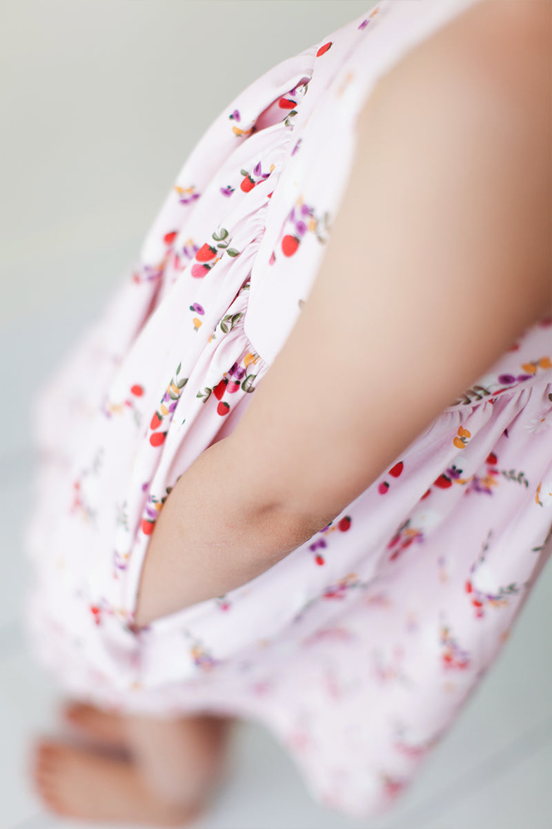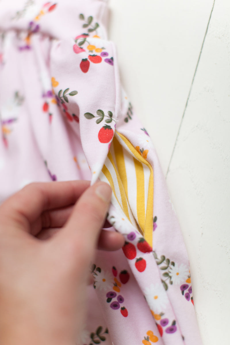 She will never want to take this super comfy dress off :) A breeze to get in and out of, and it has secret in-seam pockets for all her treasures.